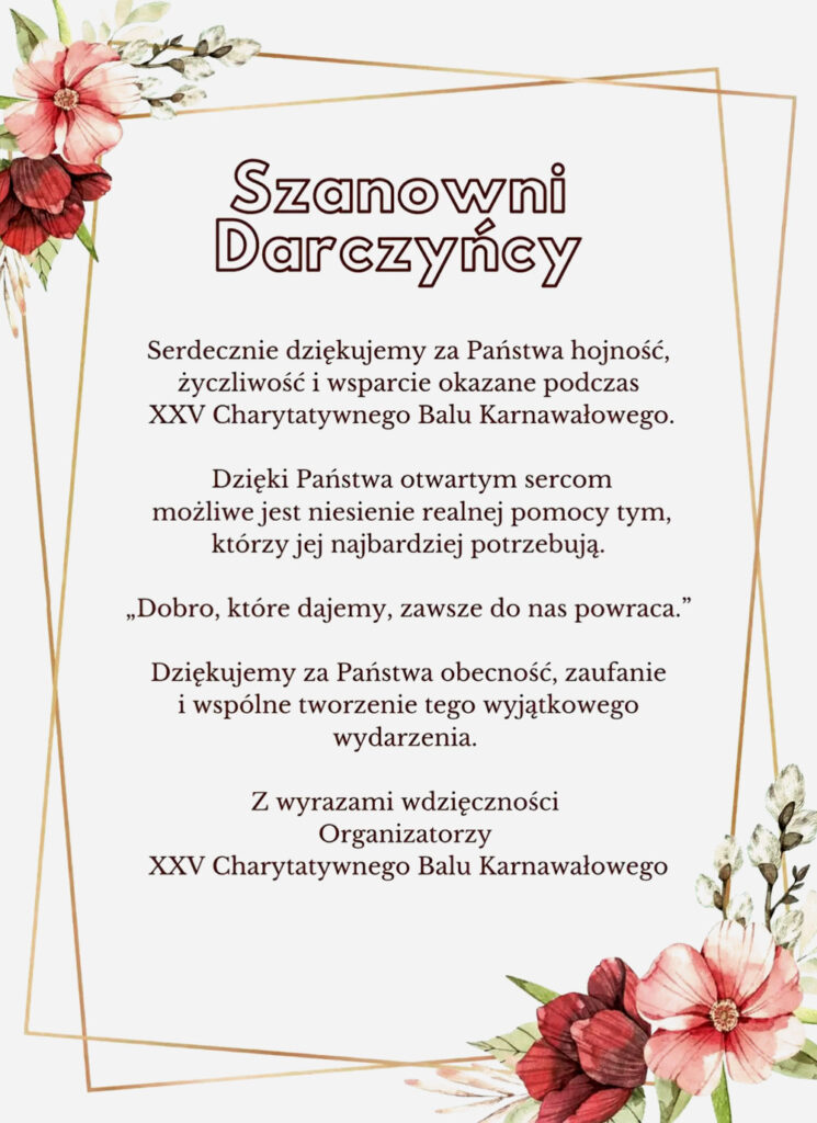 01 2025 | ■ | Participation in a charity auction for intelectually disabled children in the Special Educational Unit in Pruszków Pruszków |